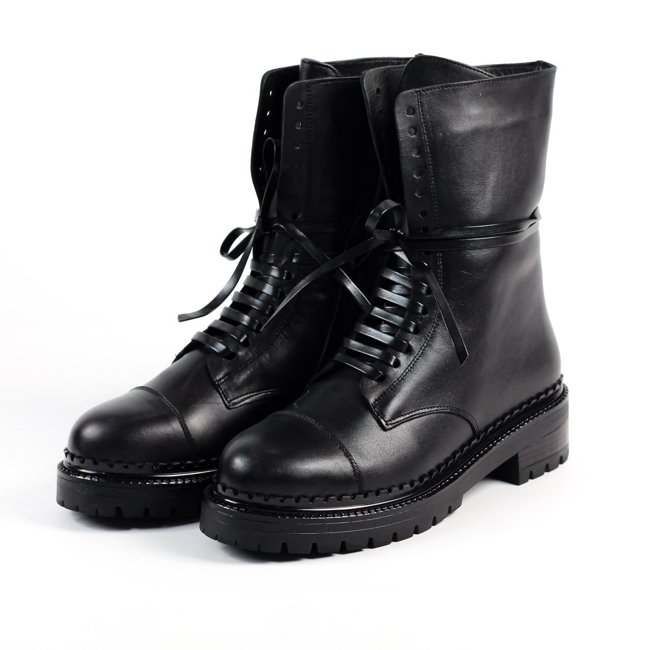 Ботинки жіночі Зимові високі Aquamarin 102468 З натуральної шкіри чорного кольору.